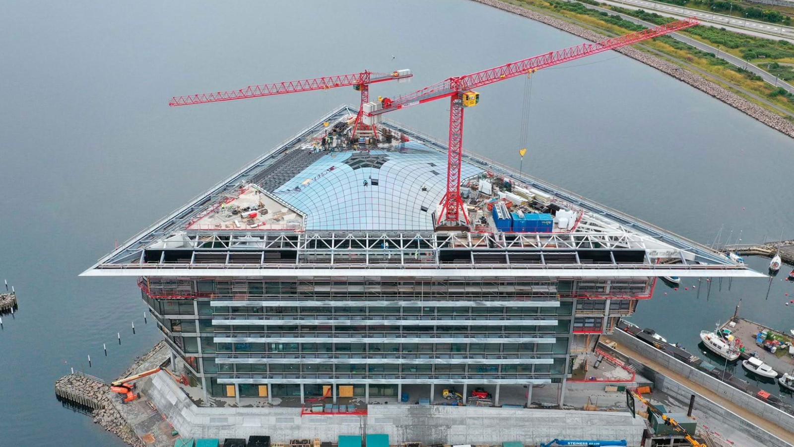 Ravimifirma Ferring Pharmaceuticals uus peakontor Taanis Kastrupis praktiliselt hõljub vee kohal. Geberiti kogemused olid asendamatud konstruktsiooni optilise kerguse saavutamisel klaaskuplini välja.